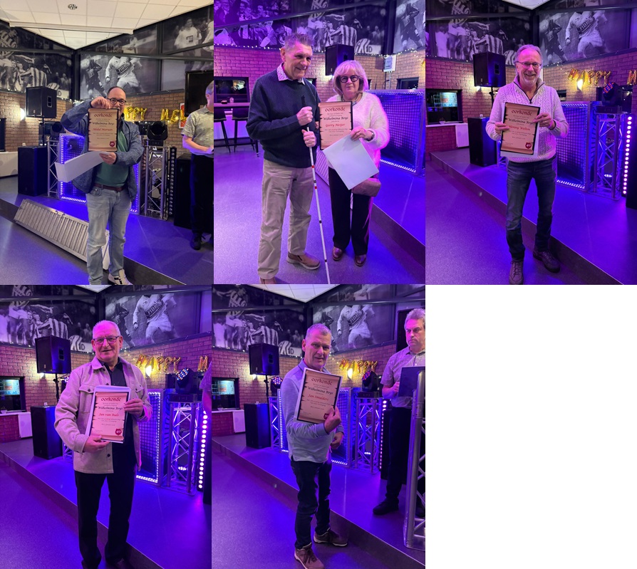 Tijdens de gezellige nieuwjaarsbijeenkomst op zaterdag 3 januari vond natuurlijk weer een korte terugblik plaats op het achter ons liggende kalenderjaar en zijn een negental jubilarissen gehuldigd die een lidmaatschap van 25, 40 en zelfs 50 jaren achter de rug hebben.