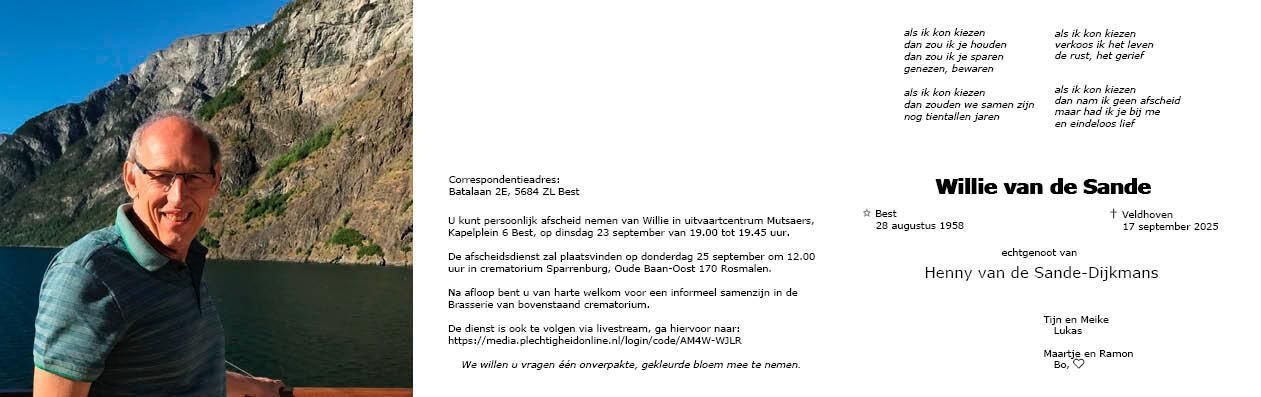 Twee jaren geleden is bij Willie kanker geconstateerd en de strijd tegen die ziekte heeft hij niet kunnen winnen, hij is slechts 67 jaren oud geworden. Wij wensen Henny, de kinderen en hun partners en de kleinkinderen ontzettend veel sterkte toe om dit enorme verlies te verwerken en een plaats te kunnen geven.